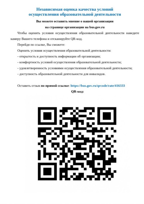 На официальном сайте bus.gov.ru для размещения информации о государственных (муниципальных) учреждениях (в соответствии с частью 12 статьи 95.2 Федерального закона от 29.12.2012 № 273-ФЗ «Об образовании в Российской Федерации») создан модуль, на котором можно просмотреть результаты независимой оценки качества образовательных услуг образовательной организации.